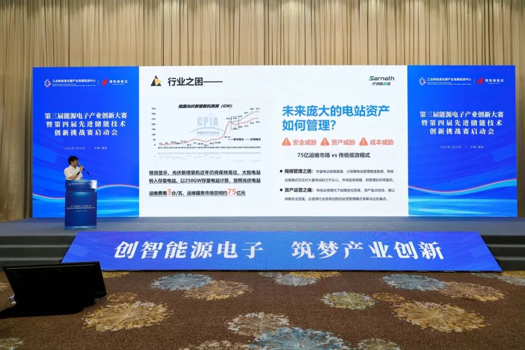 萨纳斯智维(青岛)电力有限公司凭借在第二届能源电子产业创新大赛智能化运维专题赛中斩获的二等奖,获邀参与本届启动会的路演环节,分享了名为《让每一度电都在精准掌控中》的风 / 光 / 储智慧运维解决方案。