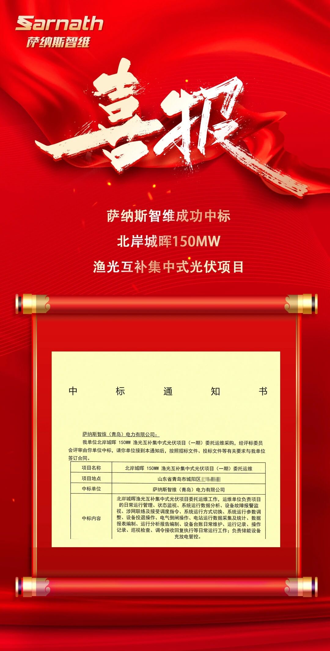 喜报!萨纳斯智维成功中标北岸150MW项目!