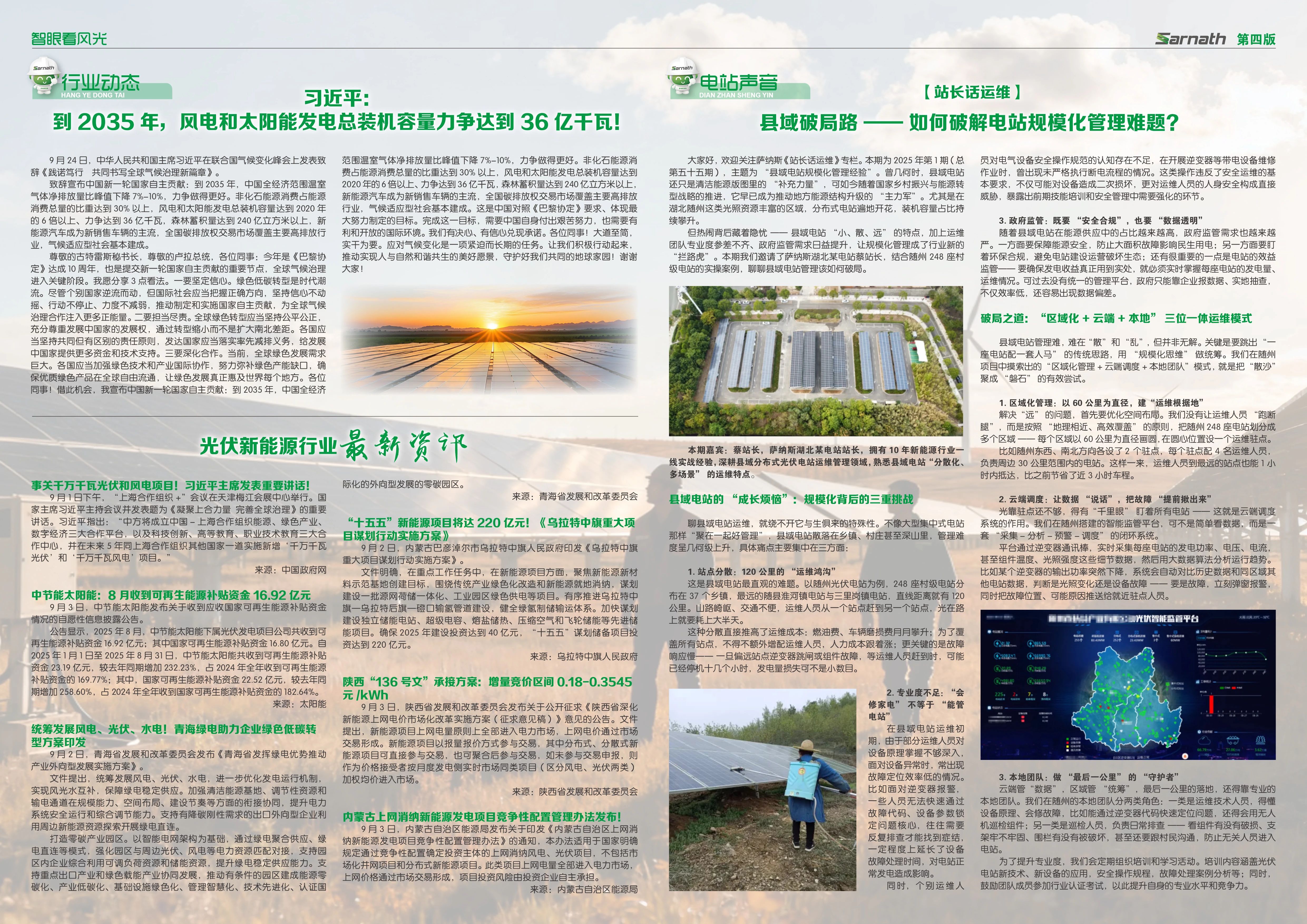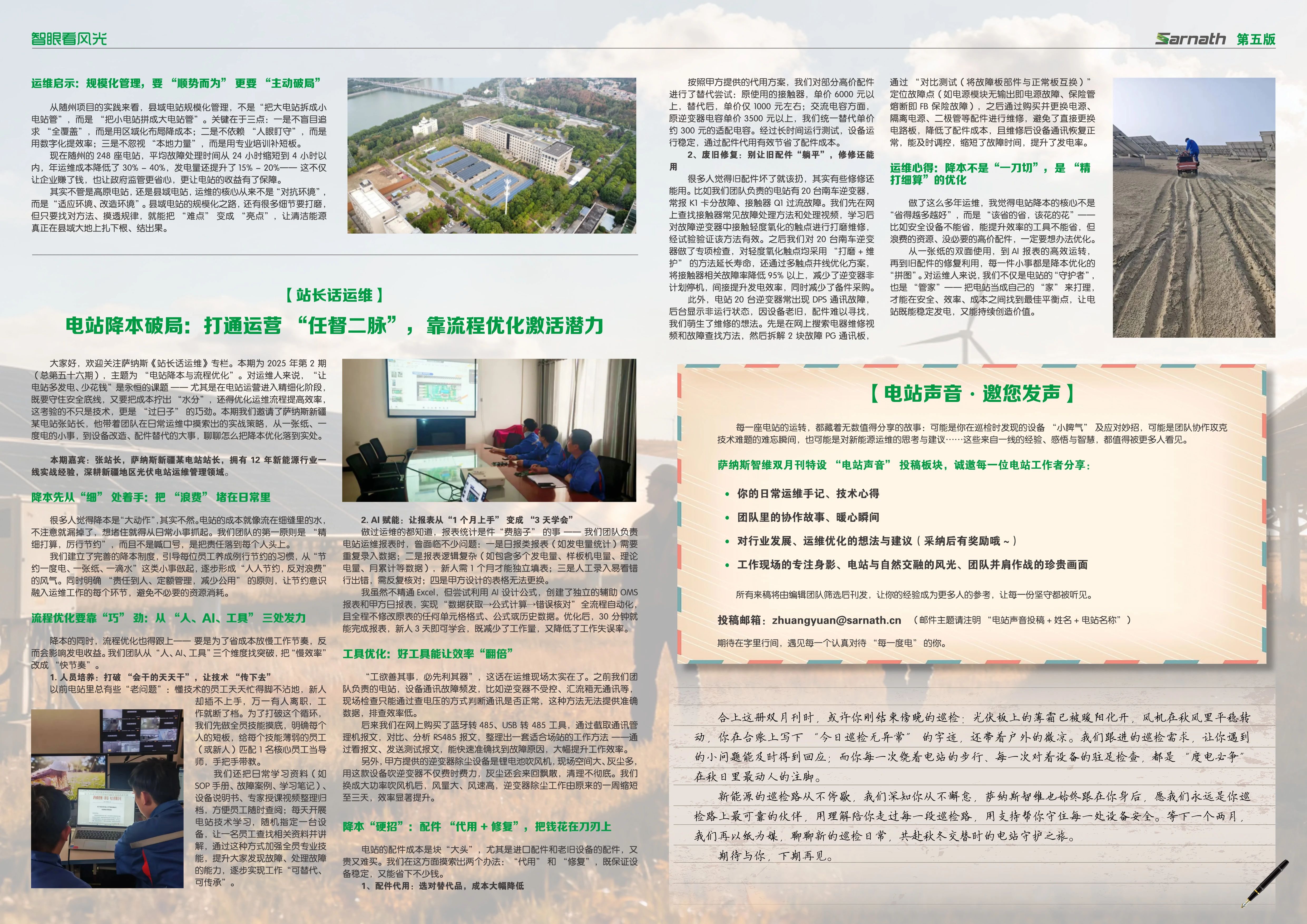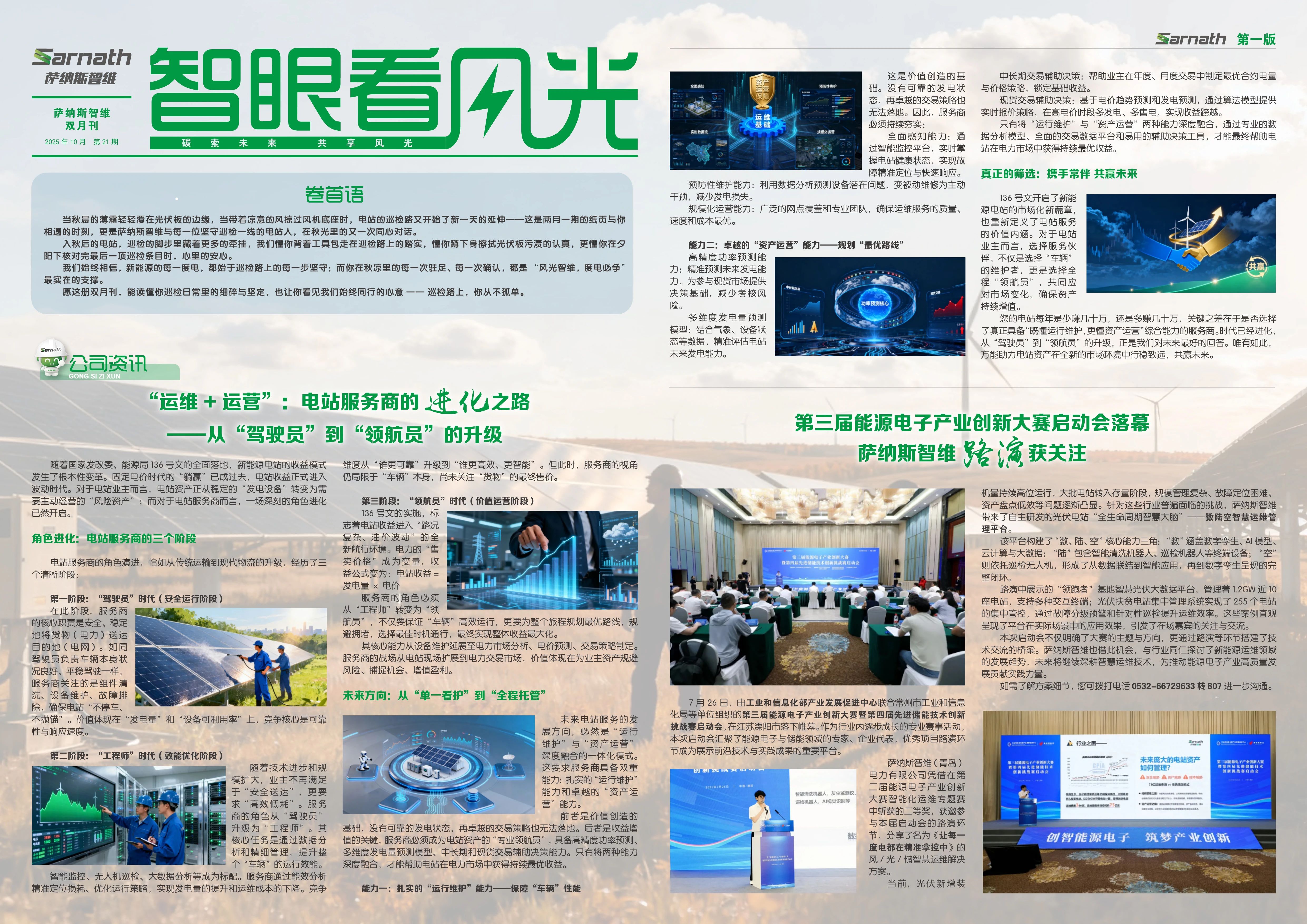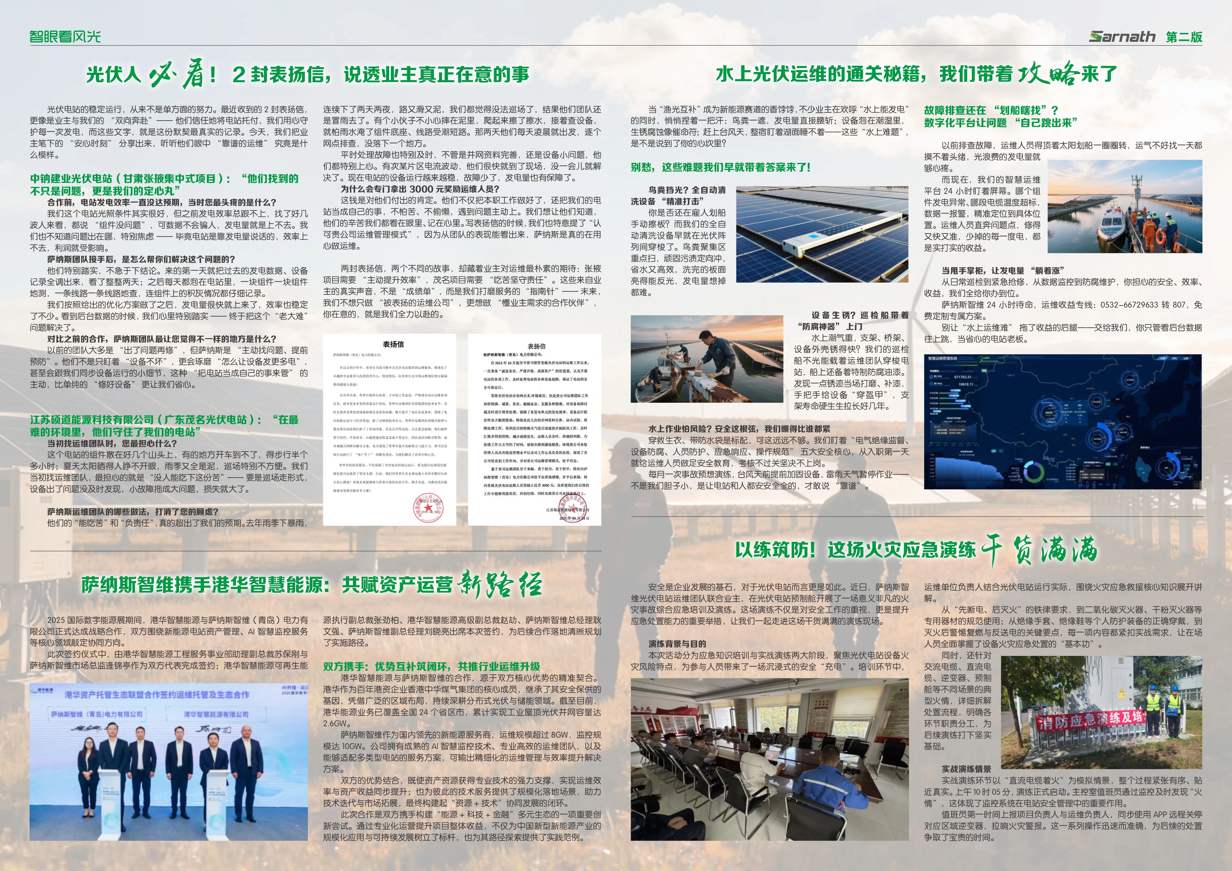 当秋晨的薄霜轻轻覆在光伏板的边缘,当带着凉意的风掠过风机底座时,电站的巡检路又开始了新一天的延伸——这是两月一期的纸页与你相遇的时刻,更是萨纳斯智维与每一位坚守巡检一线的电站人,在秋光里的又一次同心对话。