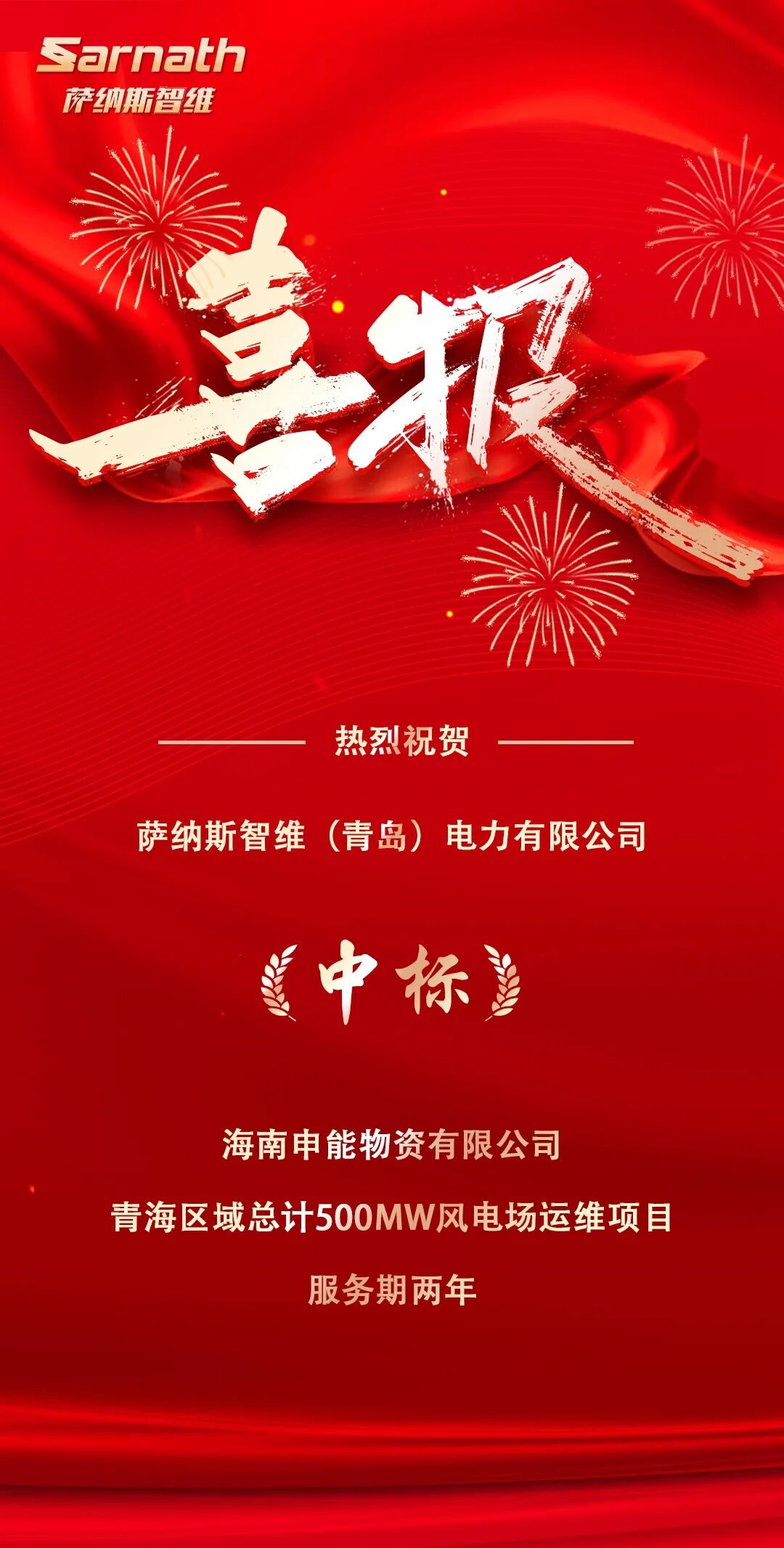 喜报!萨纳斯智维成功中标青海区域500MW风电场项目!