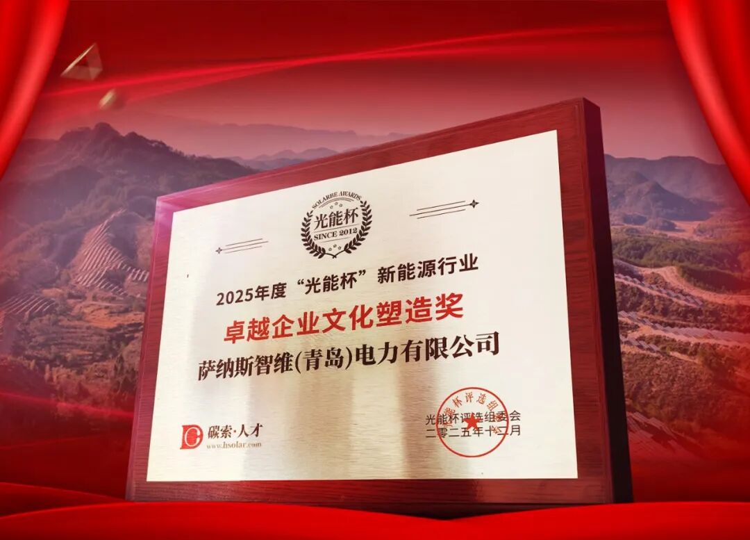 萨纳斯智维荣获 2025 “光能杯” 新能源行业卓越企业文化塑造奖